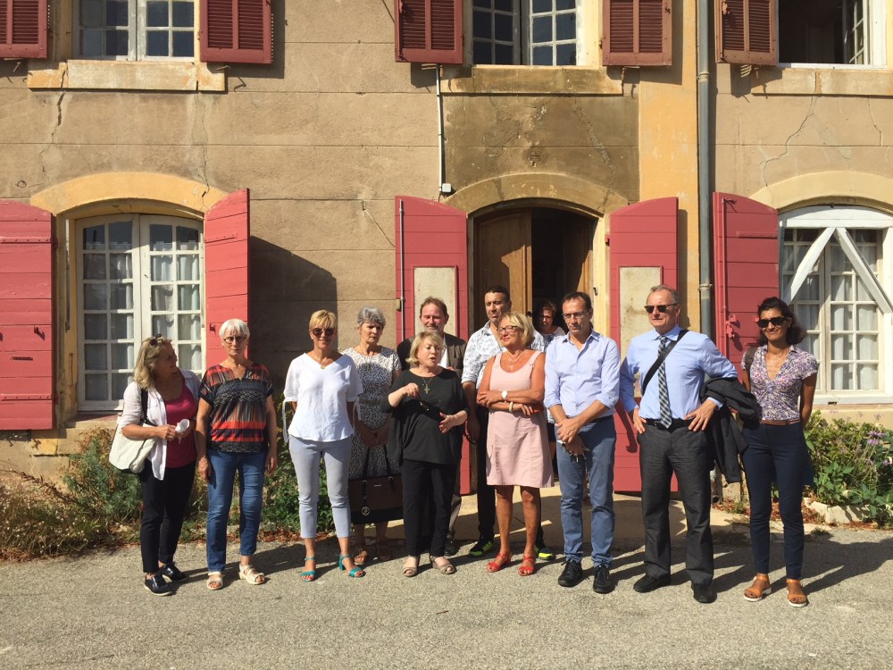 Sur la photo de gauche à droite : Mme Bonthoux (Adjoint au Maire – Gestion des propriétés communales), Mme Cavallo (Présidente Maison de Quartier La Mareschale) , Mme Devesa (Adjoint au Maire – Education), Mme Santamaria (Parcs et jardins, espaces verts), Mme Maryse Joissains-Masini (Maire d’Aix en Provence), M. Clouchoux (Directeur Général des Services Techniques), M. Benkaci (Suivi et développement du Quartier Encagnane), Mme Sicard-Desnuelle (Adjoint au Maire – Patrimoine), M. Markidès (Directeur de la Maison de Quartier La Mareschale), M. Magnan (Directeur Général des Services) et Mme Iabrazzo (Chef de Service Direction Citoyenneté et Proximité).